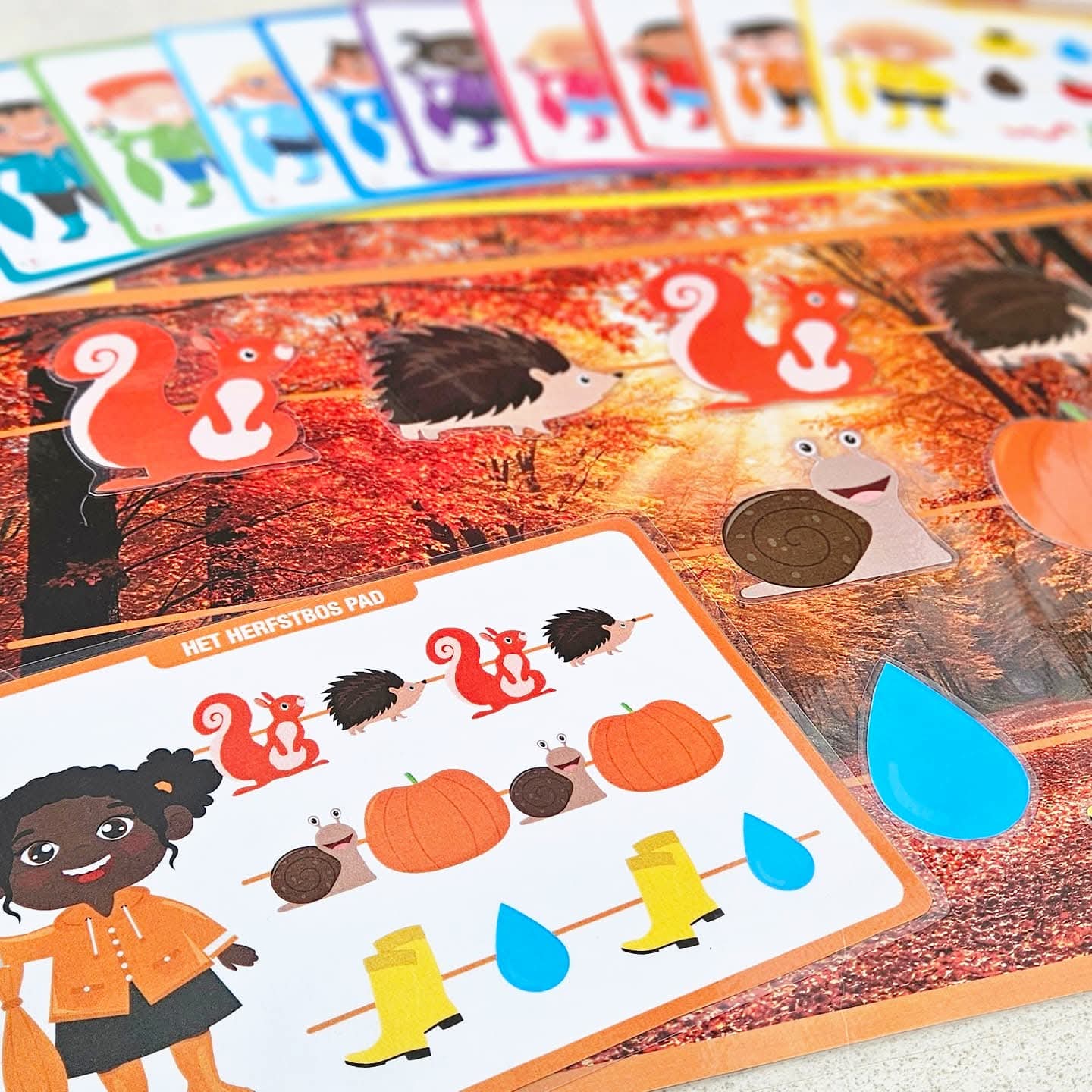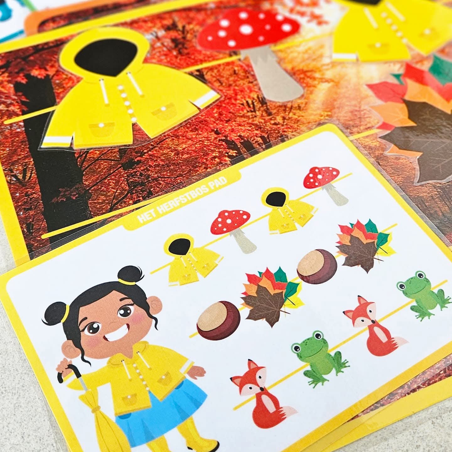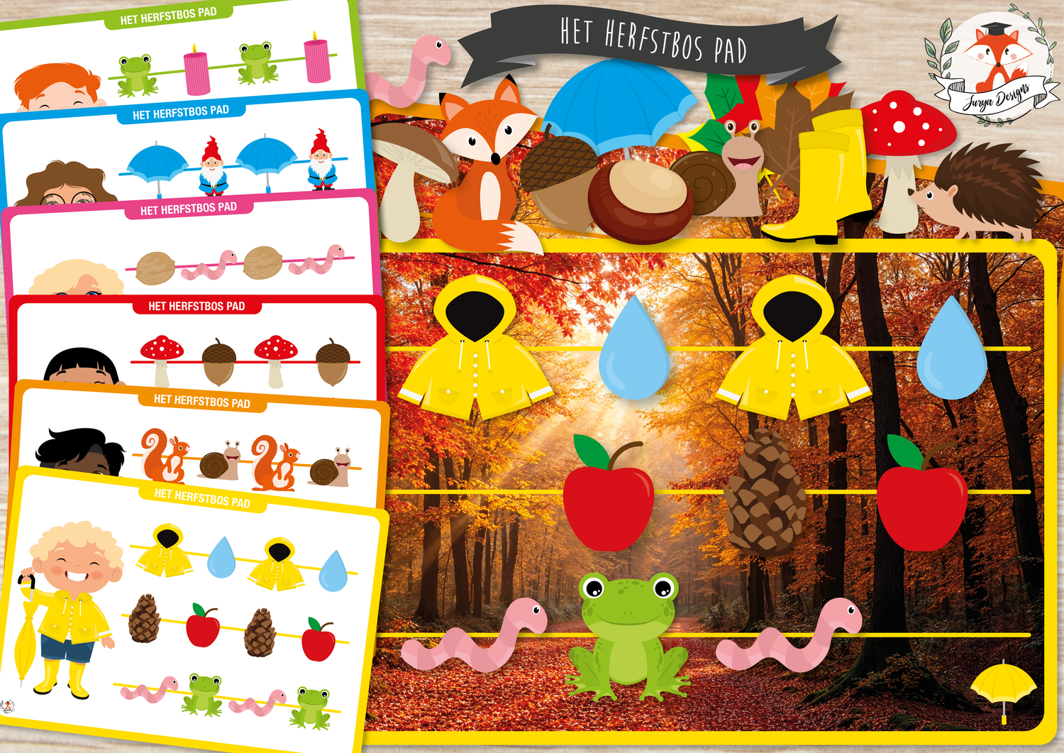Ce jeu peut se jouer de 2 à 10 joueurs. Nous partons en chasse au trésor d'automne dans la forêt. Mettez tous les objets et animaux d'automne dans un sac tactile ou un bac à attraper. Chaque joueur choisit une carte modèle d'une couleur différente et la grande carte vide de la forêt d'automne. Pour chaque couleur, vous pouvez choisir un garçon ou une fille comme carte de collecte d'automne. Chaque joueur tire à tour de rôle un objet ou un animal d'un bac ou d'un sac. Nommez l'objet ou l'animal d'automne et regardez bien votre carte modèle. Votre enfant a-t-il aussi trouvé cet objet ou animal d'automne dans la forêt ? Si oui, vous pouvez le placer sur la grande carte, sur la même ligne et à la même place dans la rangée que sur la petite carte modèle. Nous allons essayer de rassembler les bonnes combinaisons sur notre grande carte du chemin de la forêt d'automne. Si vous n'avez pas besoin de l'objet ou de l'animal, remettez-le dans le sac ou le bac. Ce tour, vous n'avez malheureusement pas trouvé les bons objets à collecter. Continuez ainsi jusqu'à ce qu'un joueur ait rassemblé tous les objets ou animaux d'automne, complets comme sur la carte modèle. Vous êtes le meilleur détective d'automne du chemin de la forêt d'automne.