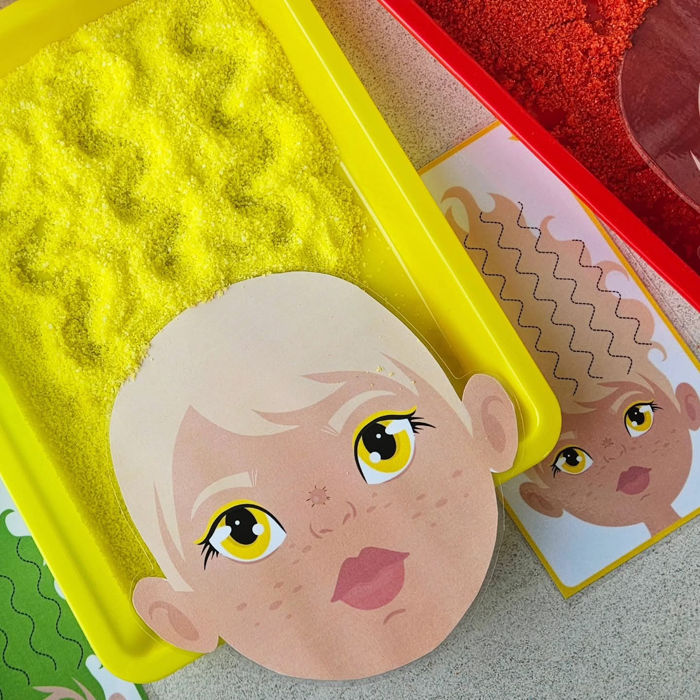 Vous recevez les têtes de sorcières à utiliser par exemple pour la danse d'écriture ou comme tâche d'écriture libre. Par exemple : fixez la tête de sorcière sur la table (dessinez les cheveux en motifs avec de la mousse à raser), fixez la tête au bas d'un bac de sable à écrire (dessinez les motifs dans le sable). Ou percez des trous dans les têtes et fixez du fil chenille ou de la corde (enfilez les cheveux).
