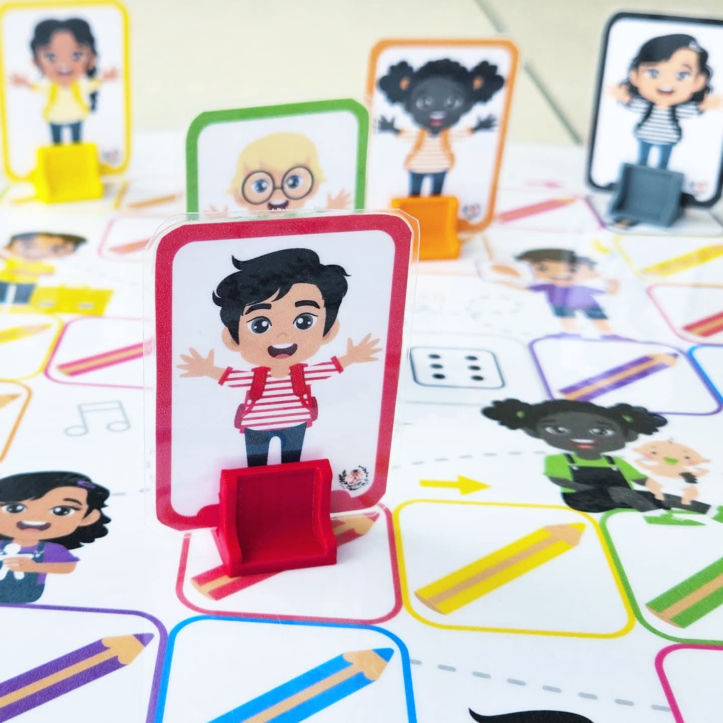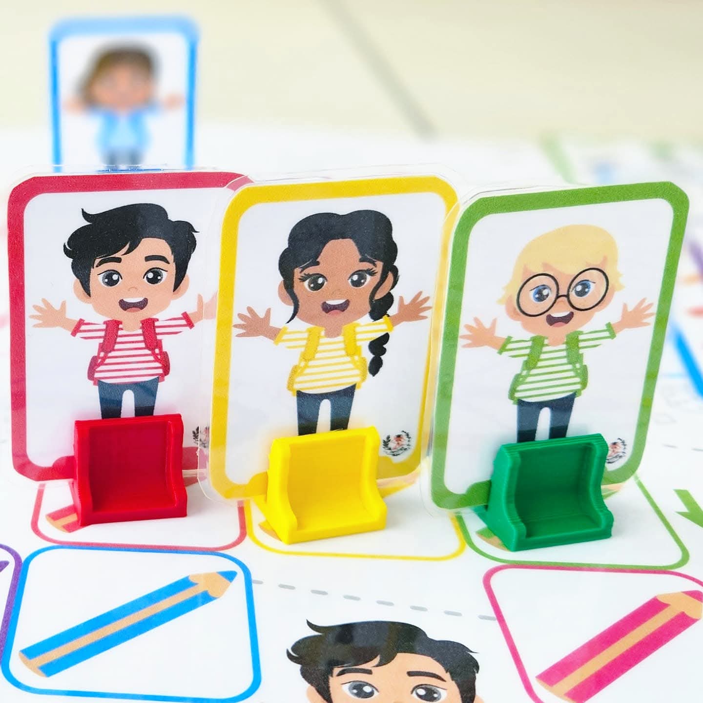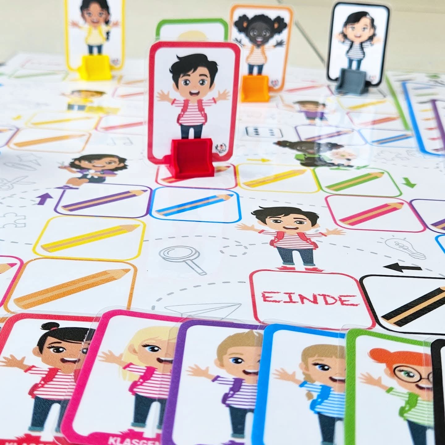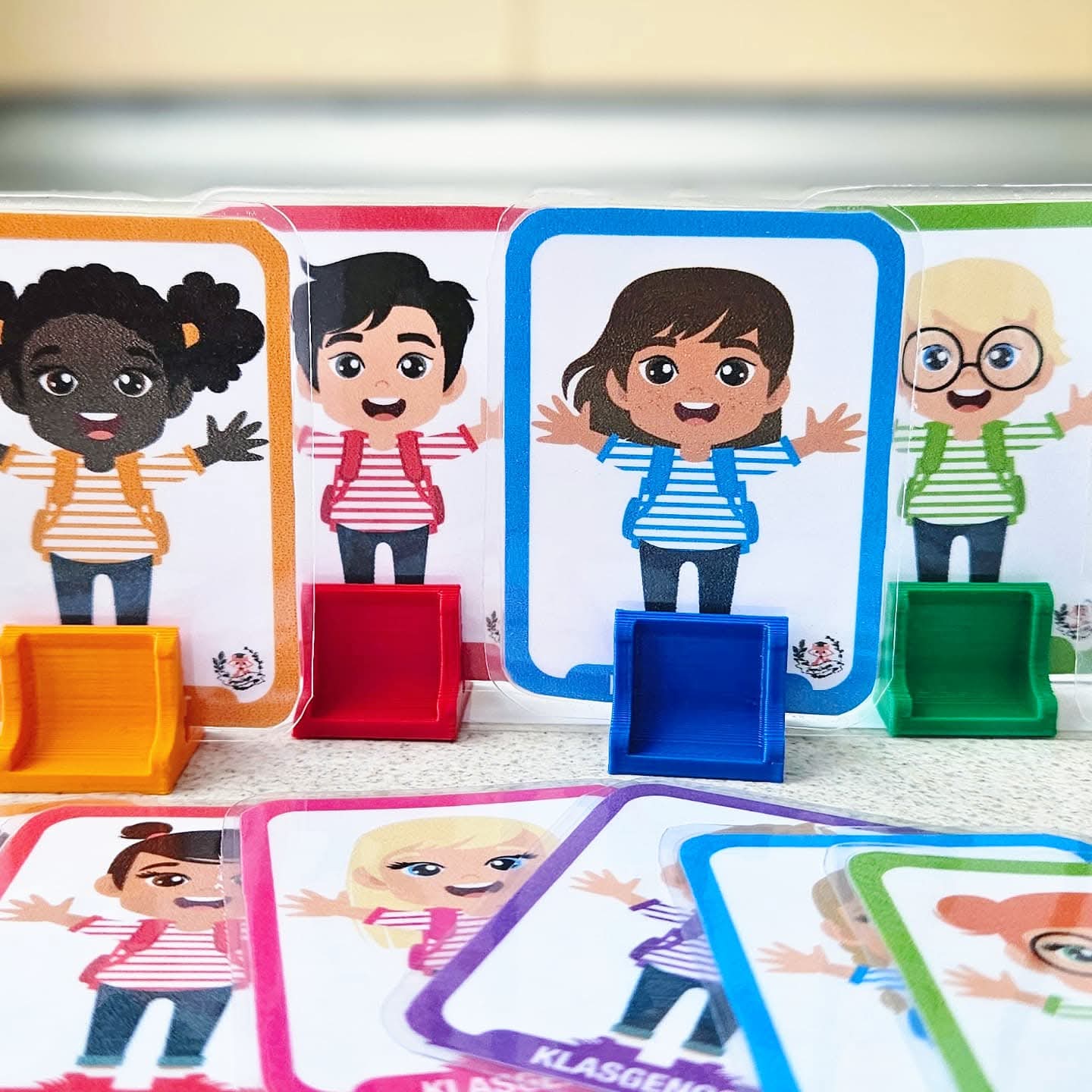 Je kan ipv onze 2D potloden ook concrete gekleurde potloden (zoals Woody’s) gebruiken indien gewenst. Heb je geen pion voetjes, kan je de kaartjes bevestigen op bijv: Duplo/Lego, houten blokje of u speelt met andere bordspel pionnen. Aan u de keuze.