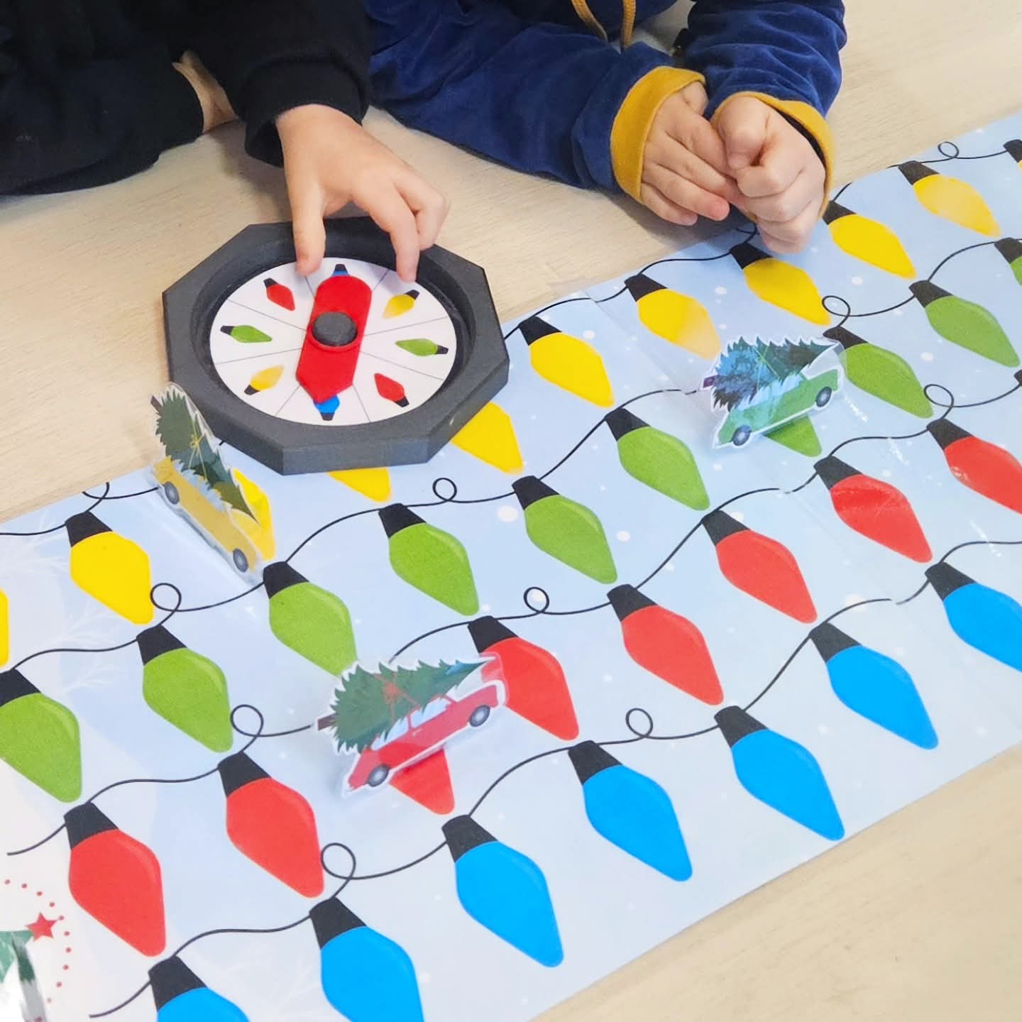 Spelvorm 2, Spin het kleur: Elke beurt mag één speler met de C-spinner draaien. Welke kleur lamp zien we? Enkel de speler met dezelfde kleur auto met kerstboom mag een stap vooruit.