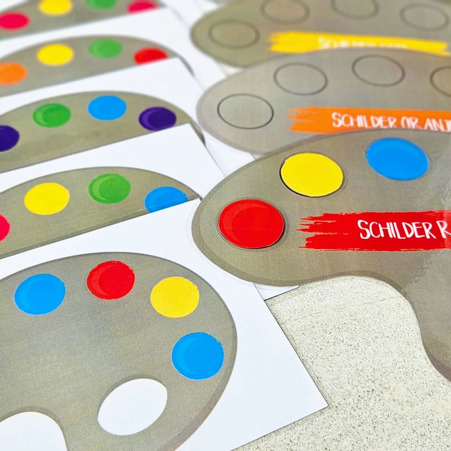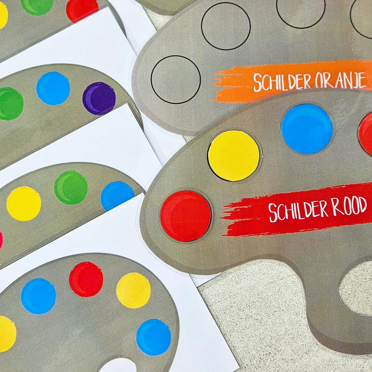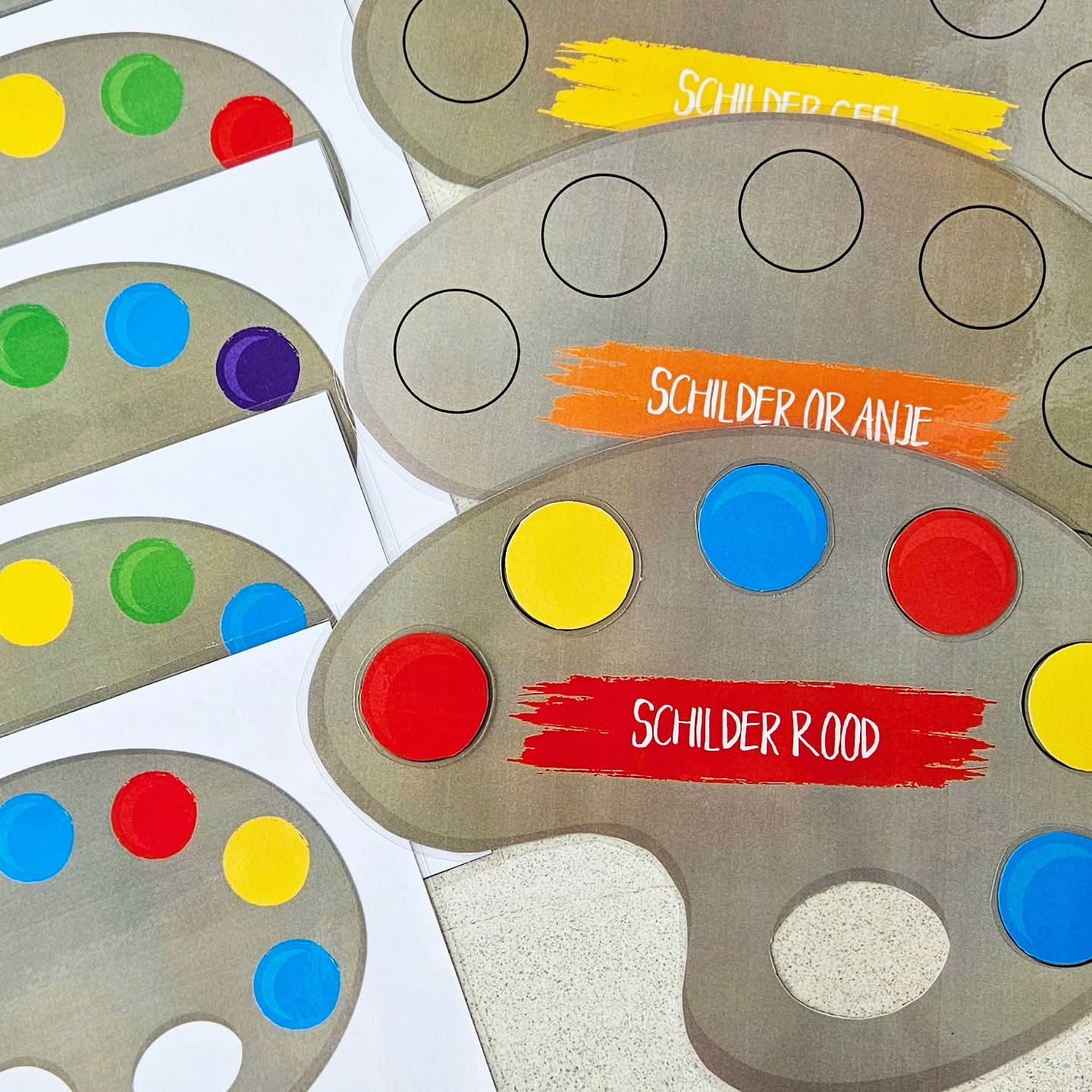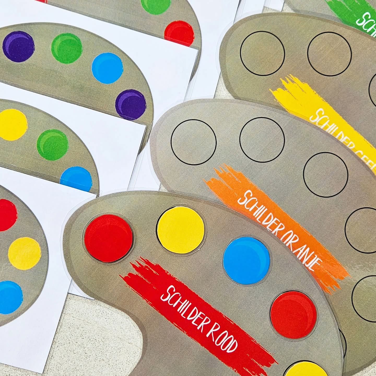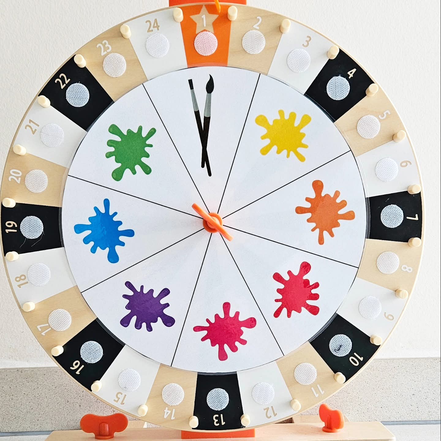 Dit spel kan met 2-8 gespeeld worden. Elke speler kiest een leeg schilderspalet en een palet kleurenkaart. Dit kleurpatroontje ga jij moeten verzamelen op jouw palet. Draai aan het rad en neem het juiste kleur, heb jij dat kleur nodig op jouw palet? Zo ja mag je deze op de juiste plaats op je palet plaatsen. Zo nee of je hebt het kleurtje al dan gaat je beurt voorbij. Kom je op de penselen, mag jij een kleurtje kiezen! Pro- beer als eerste jouw kleurkaart volledig te krijgen op je palet, dan ben jij de beste schilder van het land! Spetterde Spat wat een kunstenaar is dat!!