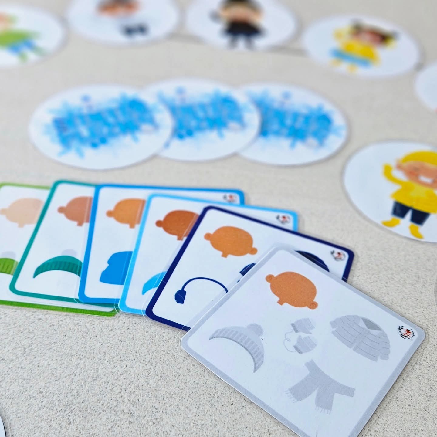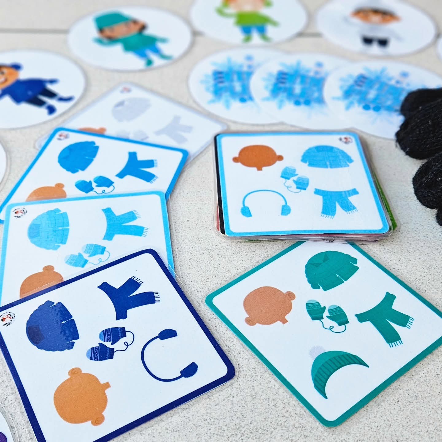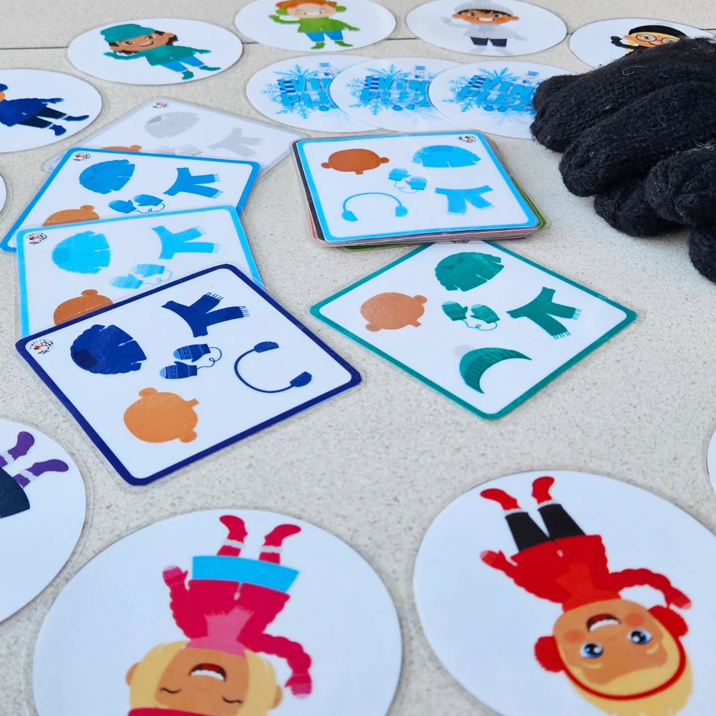Je kan het voorwerp zoals de wanten of handschoen ook weglaten en enkel als geheugenspel met kenmerk associaties op zoek gaan naar alle passende winter kindjes.